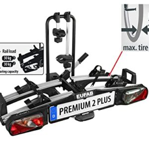 EUFAB Fahrradträger PREMIUM 2 Plus, E-Bike geeignet, für große Heckklappen, komplett vormontiert, Diebstahlschutz, für 2 Fahrräder, für Anhängekupplung, Schwarz/Grau, (BxHxT) ca. 115x67x61 cm
