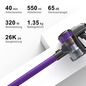 Akku-Stabstaubsauger mit 4-Stufen-Filterung, bürstenloser 320-W-Motor und 26KPa Saugleistung. 6-in-1 Handstaubsauger für Hartholzböden und Tierhaare.