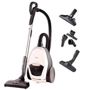 AEG VX82-1-ALR Staubsauger mit automatischer Saugkraftregulierung und extrem leiser Funktion auf Teppichen in Weiß inklusive GR210SM s-Bag Ultra Long Performance Staubsaugerbeutel MegaPack (5 Liter, Weiß).