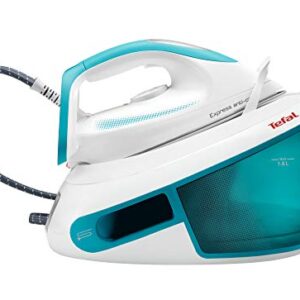 Tefal SV8010 Express Anti-Calc Dampfbügelstation, 2800 Watt, Dauerdampfmenge 120 g/Min, Dampfstoß 400 g/Min, Kapazität Wassertank 1,8 Liter, Anti-Kalk-Kollektor, Weiß/Türkis.