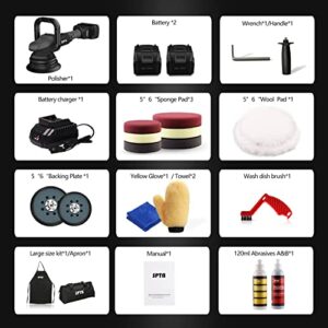 SPTA 18V Akku Exzenter Poliermaschine mit variabler Geschwindigkeit, inkl. 125mm Polierschwamm und Polierteller, 2tlg. Batterie (4000 mAh)