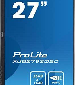 Iiyama Prolite XUB2792QSC-B1 68,5cm IPS LED-Monitor WQHD mit HDMI, DisplayPort, USB3.0, USB-C und 65W. Ultra-Slim-Line, Höhenverstellung, Pivot, schwarz.