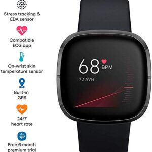 Fitbit Sense – Smartwatch Lunar Carbon/Graphite Stainless Steel