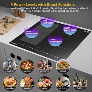 AMZCHEF Induktionskochfeld 60cm mit Flexzonen für BBQ, 4 Boost-Zonen, 9 Stufen, Warm Up und Pausenfunktion, 7400W Kochfeld Induktion mit Touchscreen