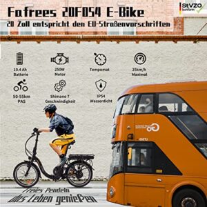 Fafrees 20F054 E-Bike Klapprad 20 Zoll mit App 250W 36V/10AH Akku, klappbar für Damen und Herren. Elektrisches Pendlerfahrrad, 25km/h, Shimano 7-Gang-Schaltung.