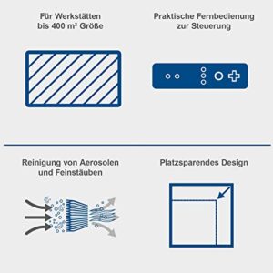 Scheppach Luftreiniger HDA-14 mit 740 m³/h Luftfilterleistung für Werkstätten bis 400m². 3 Stufen Filtration bis 1 μm. 50 dB Lautstärke. Inklusive Fernbedienung & Wandaufhängung. Luftreinigungssystem.