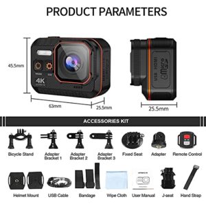 HDGFYTOR Action Cam 4K/60fps WiFi Kamera, 2.0″ LCD Bildschirm, Unterwasserkamera 10m wasserdicht, EIS Anti-Shake, 16MP Sportkamera mit Fernbedienung und Zubehör (Keine SD-Karte, Schwarz)