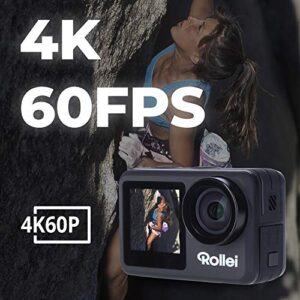 Rollei 40328 Action-Cam 8s Plus 4K 60fps Unterwasserkamera mit Selfie-Display, Bildstabilisierung, Zeitraffer, Slow-Motion, Loop Funktion, wasserdicht bis 10m.