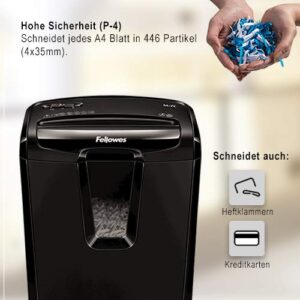 Fellowes Aktenvernichter Powershred M-7C Partikelschnitt (P-4), 7 Blatt, schwarz, kompakt für Zuhause.