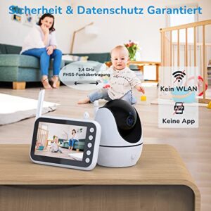 Yamctopy Babyphone mit Kamera 4,5“ HD-Display 720P, Baby Monitor mit Infrarot-Nachtsicht, Zoom 2X, Zwei-Wege-Audio, VOX-Modus, Schlaflied, Temperaturanzeige