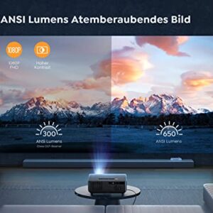 Beamer Full HD 1080P 5G WiFi Bluetooth 4K Video Unterstützt YABER ACE K1 650 ANSI Lumens Autofokus Heimkino Video, kompatibel mit Smartphone/TV Stick/PS5 Projektor.