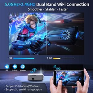 YABER Full HD 1080P Beamer, 5G WiFi, Bluetooth, 12000 Lumen, 4K Unterstützung, Trapezkorrektur, -50% Zoom, LED Heimkino Beamer für IOS/Android/TV Stick/PS5.