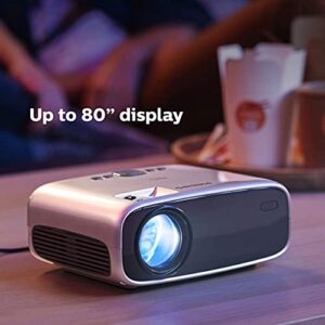 Philips NeoPix Easy+ Miniprojektor, 2.600 LED-Lumen, 80″ Bildgröße, Wi-Fi-Spiegelung, Bluetooth, Media-Player, HDMI, USB, microSD, 3,5-mm-Audioausgang, Grey.