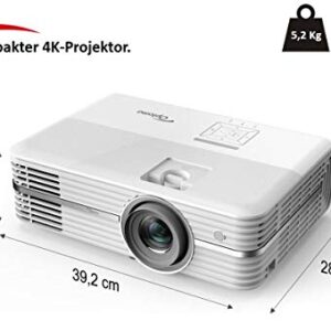 Optoma UHD40 4K DLP Projektor (UHD, 2400 Lumen, Kontrast 500.000:1, Zoom 1,3x, 2x HDMI, 1x VGA) weiß