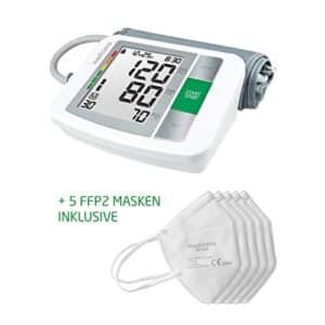 Medisana BU 510 Oberarm-Blutdruckmessgerät mit Speicherfunktion für präzise Blutdruck- und Pulsmessung + Medisana FFP2 Atemschutzmaske, 5 Stück einzeln verpackt.