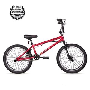 HILAND 20″ BMX Freestyle Fahrrad für Mädchen und Jungen mit 360° Kreisel und 4 Heringen, geeignet für Kinder von 9-13 Jahren, rot.