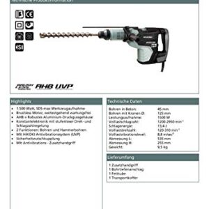 HiKOKI DH45MEY Bohr- & Meißelhammer (1500W, 12.2 J, Brushless, SDS-max-Werkzeugaufnahme, Antivibrationssystem, Zubehör, Koffer)