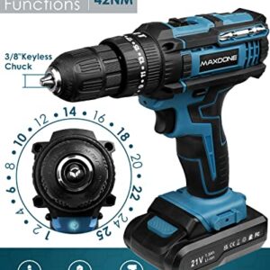 21V Akkuschrauber Set mit 2 Akkus und 90 PCS Zubehör, Bohrschrauber 42Nm und Schraubendreher 25+3.
