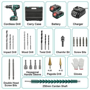 STANEW 3-in-1 Bohrschrauber-Set 20V Li-Ionen-Akku 13mm Schnellspannbohrfutter 18+3 Drehmoment 2 Akkus und Ladegerät ST-919