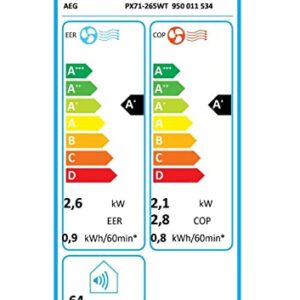 AEG PX71-265WT Eco mobile Klimaanlage, spiralförmiger Luftstrom, App-Steuerung, Spracherkennung, Fernbedienung, Fenster-Kit, Kühlen, Heizen, Ventilator, Entfeuchten, Automatik, weiß/silber.