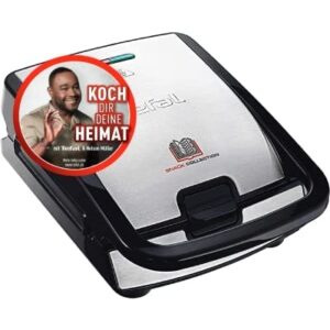 Tefal Snack Collection 4er Set SW854D – Kombigerät mit 4 antihaftbeschichteten Plattensets für Paninis, Waffeln, Sandwiches und süße Küchlein, 700W, spülmaschinengeeignet, Schwarz/Edelstahl.