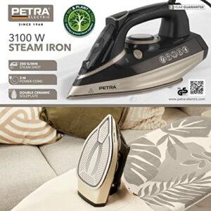 Petra Dampfbügeleisen PF0820VDEEU7 mit doppelter Keramikbügelsohle, 3100W, 200g Dampfstrahler, Wasserspray, 300ml Wassertank, Anti-Kalk und Tropfschutz.