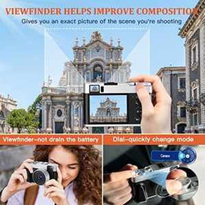 CAMKORY 4K Digitalkamera mit Autofokus, 32G Karte, 48MP, optischem Sucher, Blitz, Moduswahl, 16x Zoom, Bildstabilisierung, 2 Akku und einfacher Bedienung für Einsteiger und Vlogging.