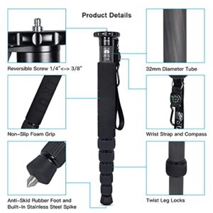 SIRUI P-326 Carbon Fiber Einbeinstativ, 6 Sektionen, Max 155cm, 10kg Last, 39,2cm Packmaß.
