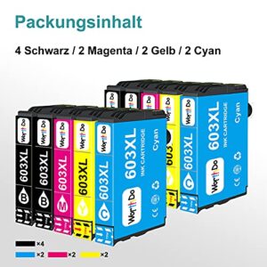 WorthDo 603XL Patronen Ersatz für Epson 603 XL Druckerpatronen, kompatibel mit Expression Home XP-2100, XP-2105, XP-3100, XP-3105, XP-4100, XP-4105, WF-2810, WF-2830, WF-2835, WF-2850 (4x Schwarz, 2x Cyan, 2x Magenta, 2x Gelb)