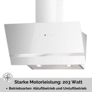 PKM Schräghaube S21-90AWTY | Kopffreihaube | 90 cm | Glas weiß | Touch Control | Abluft/Umluft