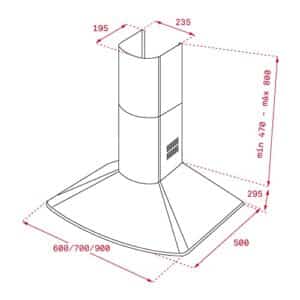 Gurari 461 Dunstabzugshaube 70cm Edelstahl, 1000m³/h, 3 Stufen, Drückknöpfe, Wand-/Abzugshaube, Abluft-/Umlufthaube, Kaminhaube, Dunsthaube – Premium Marke