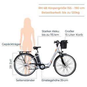 ZÜNDAPP Z517 E-Bike Cityrad Damenrad Pedelec Elektrofahrrad 28 Zoll (weiß/orange, 48 cm)