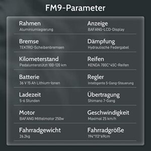 Fafrees FM9 E-Bike Herren Elektrofahrrad mit BAFANG Mittelmotor, 700C*45C Reifen, 65N.m 250W Motor, 36V 15Ah Akku, S Pedelec und Shimano 7S Schaltung, bis zu 25km/h, 150 kg Belastbarkeit.