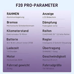 Fafrees F20 Pro E-Bike Klapprad Elektrofahrrad 20 Zoll 250W 3.0 Fat Tire Faltbares 36V 18AH Akku Fatbike Damen Shimano 7S MTB e Bike Herren 25km/h Citybike Erwachsene blau