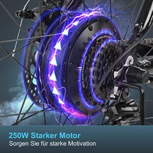 ADO A20F E-Bike klappbar, elektrisches Klapprad mit 250W Motor, 36V/10.4Ah Batterie (Reichweite 40-80km), schwarz.