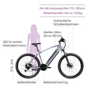 ZÜNDAPP Z808 E-MTB 27,5″ Damen/Herren Silber/Lila 48cm