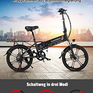 Samebike 20″ E-Bike Klapprad 48V 10.4Ah mit abnehmbarem Akku, Shimano 7-Gang-Schaltung für City-Einsatz von Herren und Damen.
