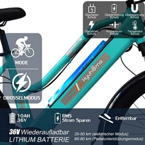 Hyuhome Elektrofahrrad für Frauen, 26″ 36V 10A E-Bike mit abnehmbarer Lithium-Ionen-Batterie in Grün. Ideal für Outdoor-Aktivitäten, Radreisen und Arbeit.