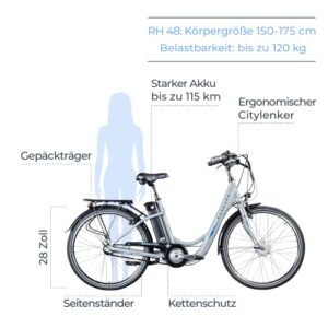 ZÜNDAPP Green 2.7 E-Bike 28″ Damen Pedelec Elektrofahrrad 700c (grau, 48 cm)