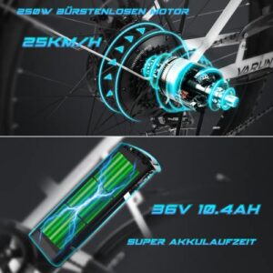 VARUN E-Bike 26″ 250W 36V 10,4Ah Lithiumbatterie Damen/Herren City-Pendler mit Shimano 7-Gang-Getriebe
