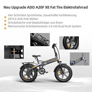 ADO A20F XE E-Klapprad, E-Bike, Pedelec 20 Zoll Fetter Reifen, 250W Motor/36V/10.4Ah Batterie/25 km/h, mit Heckrahmen, schwarz.