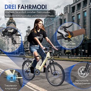 27,5 Zoll E-Bike Citybike mit Shimano 7 Gang, LCD Display, 250W Hinterradmotor und 36V13Ah Batterie.