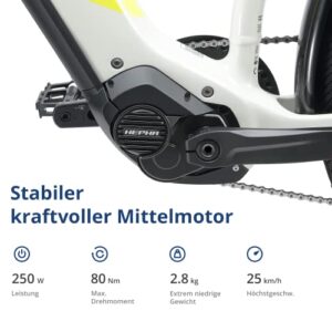 HEPHA E-Bike Trekking 7 Longrange mit 708Wh Akku und 80Nm Mittelmotor, Pedelec 10-Gang 27,5 Zoll Unisex Highstep (49, Light Grey)