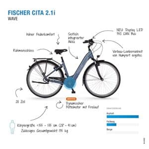 Fischer E-Bike City CITA 2.1i für Damen und Herren, RH 41 cm, Mittelmotor 65 Nm, 36 V Akku im Rahmen, saphirblau matt, 28 Zoll