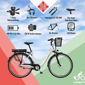 Telefunken E-Bike Alu mit Shimano 7-Gang Nabenschaltung, Pedelec Citybike mit Korb, 250W, 13Ah Akku und 28 Zoll Reifen – RC657 Multitalent