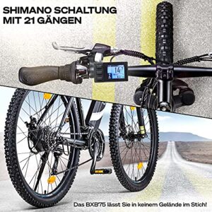 Bluewheel E-Bike 27,5″ & 29″ I Deutsche Qualitätsmarke | EU-konformes Offroad E-Mountainbike 21 Gänge & Hinterradmotor für 25 km/h bis zu 150 km | Fahrrad mit MTB-Federgabel, App, LED-Licht | BXB75 E-Bike