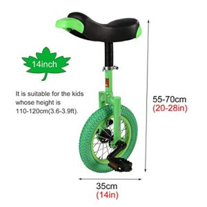 Einrad Grünes Einrad für Kinder/Jugendliche/Anfänger/Kleinkinder, strapazierfähig, höhenverstellbar, Outdoor-Fitness (Größe: 14 Zoll) (Grün)