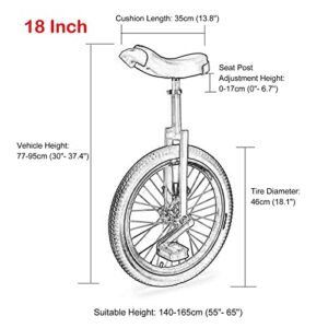 Einrad Rot 24″/20″/18″/16″ für Erwachsene/Anfänger/Kinder, auslaufsicherer, rutschfester Reifen (Größe: 20 Zoll) in Rot (24 Zoll) geeignet für Jungen/Mädchen/Kinder 9–17 Jahre.