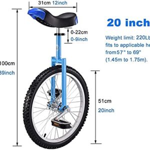 Samnuerly Fahrrad-Einrad 20-Zoll für Erwachsene, Jugendliche, Anfänger – hochfeste Gabel, verstellbarer Sitz, belastbar bis 150 kg/330 lbs (Schwarz/Blau)