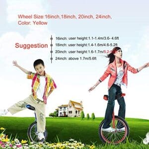 : Einrad Gelb 24/20 Zoll für Erwachsene Anfänger, 18/16 Zoll für Kinder/Jugendliche (9-15 Jahre) zum Selbstausgleich bei Outdoor-Sportarten.